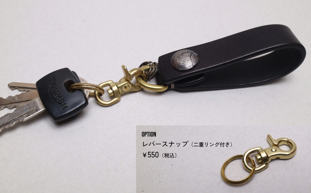 また、走行中はイグニッションキーを車体に差しておくのですが、その時は鍵だけを差しておきたいので、レバースナップを使い、キーループから鍵を外せるようにしておくのが私の使い方です。
