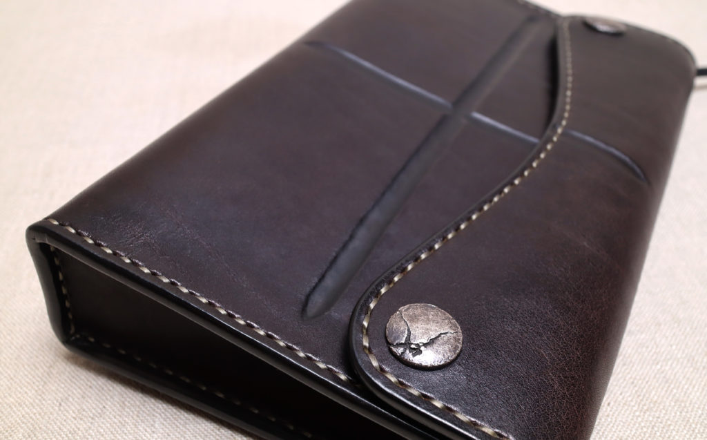 革の断面(=コバと呼びます)はあまり注目されない部分ですが、こちらも手間と時間を惜しまず染色・ヤスりがけ・磨きを繰り返し、長く愛着を持っていただけるよう、見た目も手触りもよいコバに仕上げています。